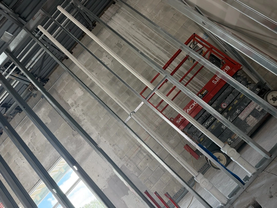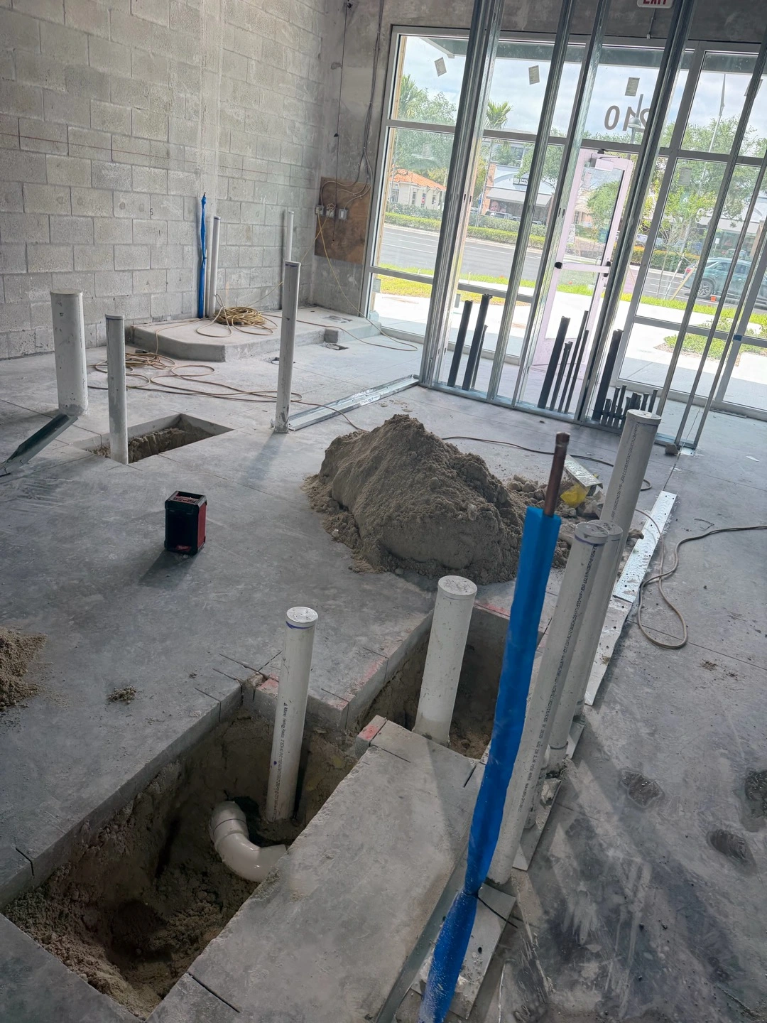 New construction plumbing installation for Shake Shack in Doral, including rough-in and fixture preparation.